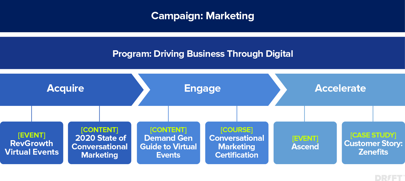Once marketing leaders have decided what campaigns they plan to run and the demand generation team has identified which audience segments we will target, product marketers come up with a program narrative. These narratives focus on a specific target audience and core theme, and then informs what offers are created.